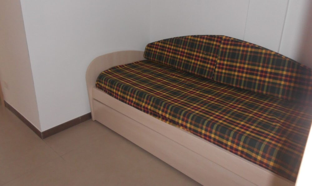 Il Trilocale ubicato al primo piano è composto da camera con letto matrimoniale, camera con letti a catello, ampio soggiorno con divano letto e angolo cottura, TV LCD 32 pollici, bagno completo con box doccia, ampia veranda esterna chiusa da cancelletto.