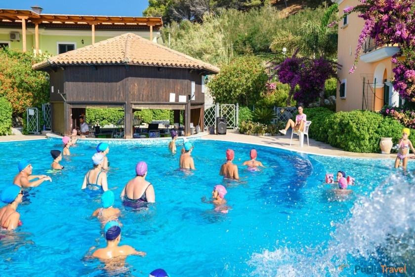 Include Servizio Spiaggia dalla 3° fila in poi assegnato dalla direzione (un ombrellone, un lettino e una sdraio), piscina con zona per bambini e angolo idromassaggio, campi da beach volley, intrattenimenti diurni e serali, corsi collettivi sportivi, aquagym, canoe, Mini Club 4/12 anni, balli di gruppo, la sera spettacoli nell’anfiteatro, cabaret, parco giochi per bambini. Parcheggio interno non custodito.