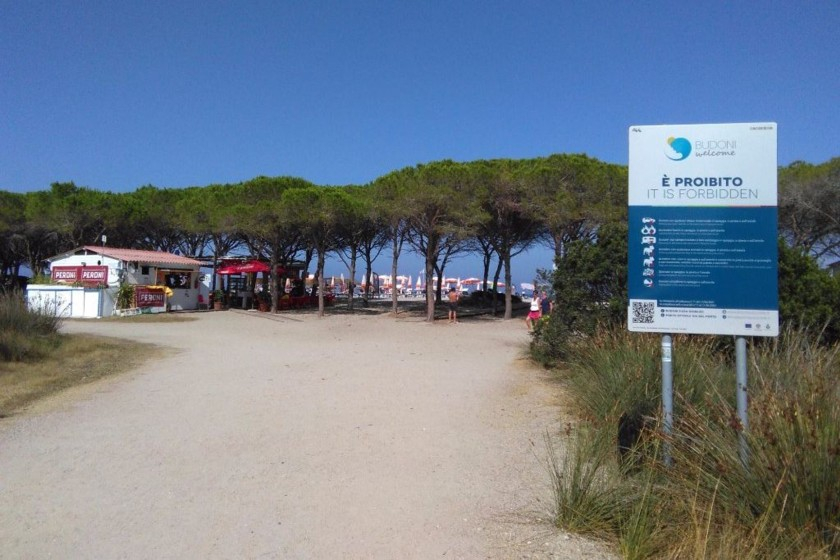 Lunga di sabbia, dista 300/500 mt. ed è attrezzata con ombrelloni e lettini per tutti gli ospiti senza assegnazione, il servizio è incluso nella Tessera club.