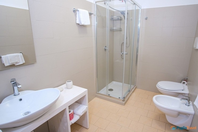 La spiaggia privata è a soli a 400 mt, raggiungibile comodamente a piedi, in bicicletta o con il servizio navetta. Il litorale è misto tra sabbia e rocce piatte, con fondale leggermente digradante e comodo accesso sia per gli adulti che per i bambini. Sarete stupefatti dagli incredibili colori del mare salentino, cangianti dal verde al celeste, premiato per la quinta volta consecutiva con la Bandiera Blu. In spiaggia potrete rilassarvi in un ambiente tra i più incontaminati delle coste salentine, raggiungendo a piedi le meravigliose aree protette della riserva naturale. Il servizio spiaggia è incluso nella card servizi e prevede servizio navetta, ombrellone e due lettini per camera. È inoltre possibile raggiungere le vicine spiagge libere, con servizio navetta ad orari prestabiliti: la struttura mette a disposizione, gratuitamente, un ombrellone compact portatile per la vostra giornata a mare in un’oasi protetta, dove rilassarvi lontano dai lidi organizzati e poter scegliere le calette, spiagge o scogliere che più vi affascinano.